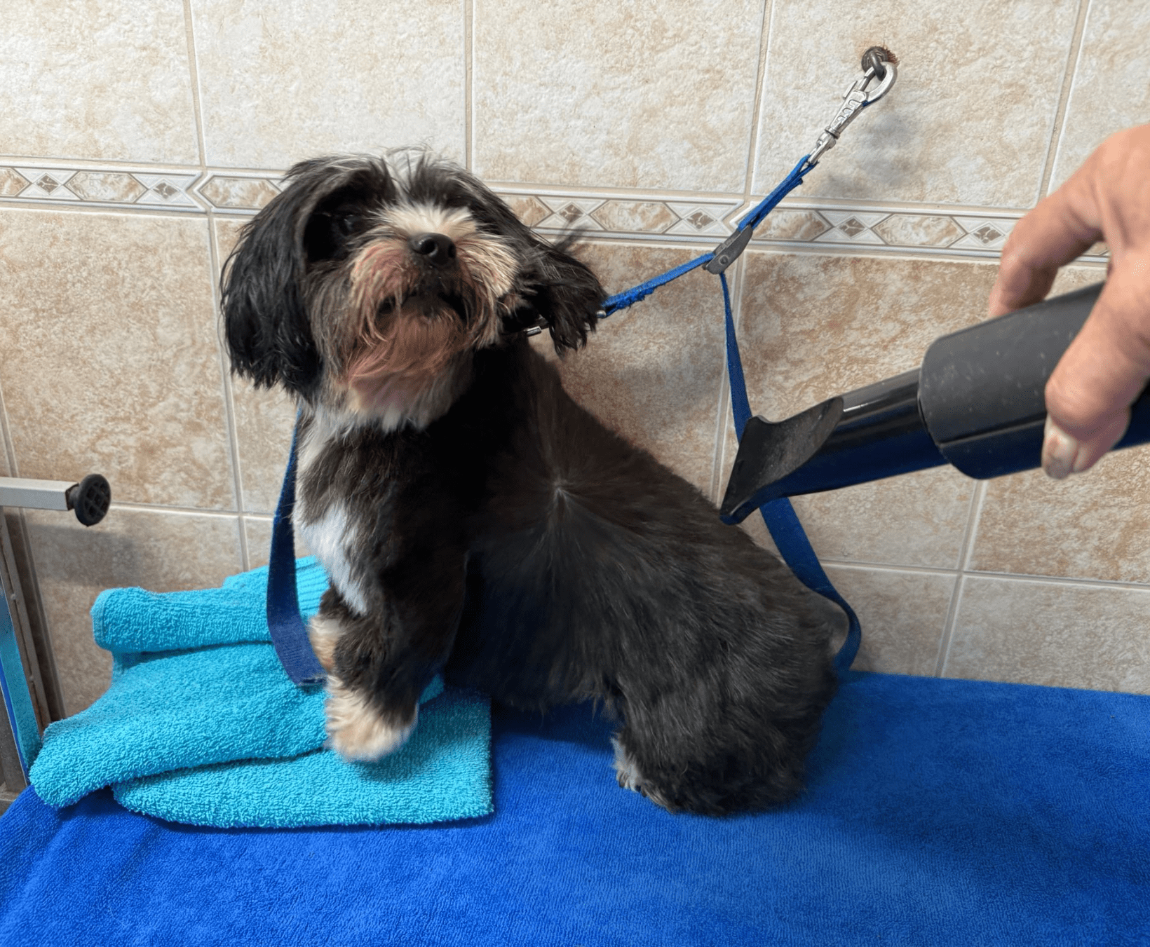 Voor de veiligheid van uw hond, uzelf en anderen is het belangrijk dat uw hond aangelijnd blijft bij aankomst en vertrek uit de salon.